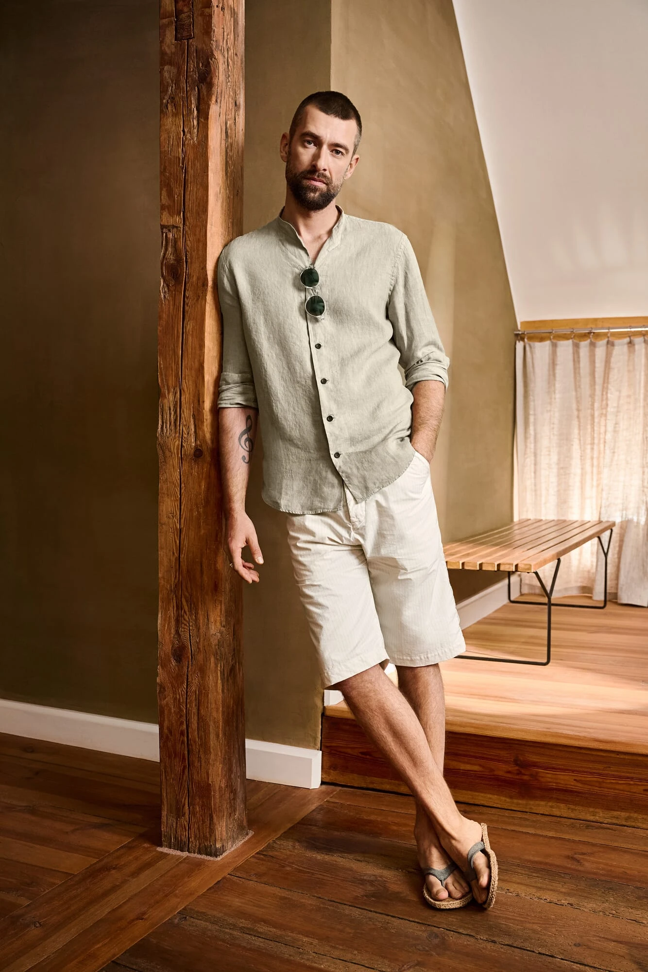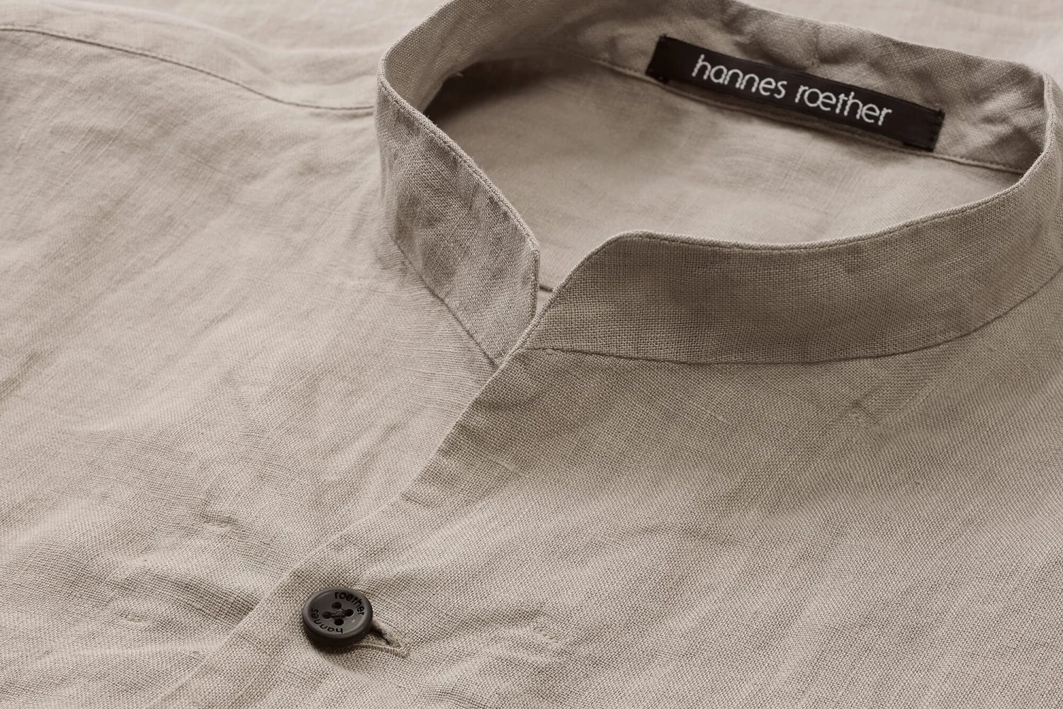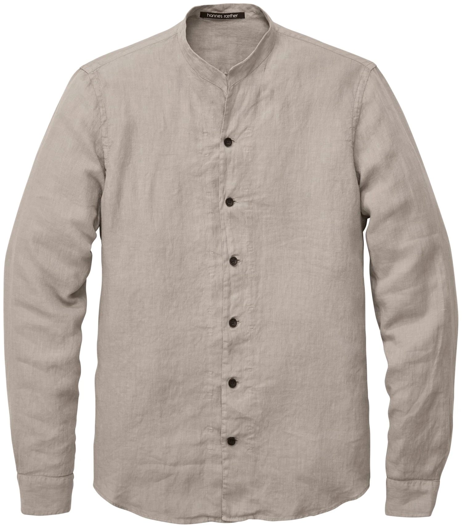 Casual zomerhemd van linnen dat een uitgesproken edele plooi vertoont. De losjes vallende stof heeft ook de voor linnen typische draadverdikkingen en een karaktervol melange-effect. Dankzij de ademende en verkoelende eigenschappen is het shirt zelfs in hartje zomer aangenaam om te dragen. Hannes Roether maakt het met een knooploze, smalle opstaande kraag en zonder borstzak.