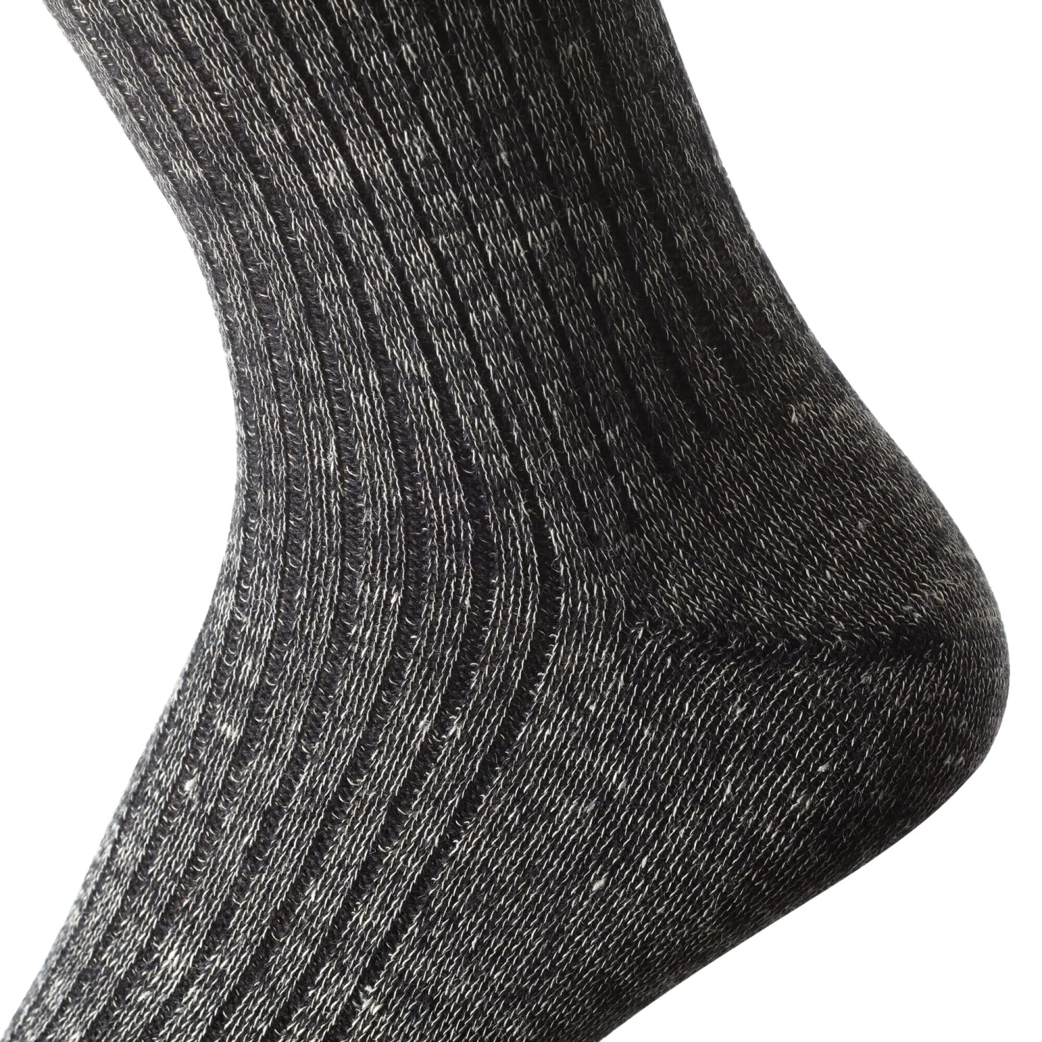 Deze sokken worden gemaakt in het Münsterland – door een bedrijf dat niet het slachtoffer is geworden van goedkope importen omdat het zich in twee opzichten (en in de dubbele betekenis van het woord) heeft “gespecialiseerd”: in de hoogste kwaliteit en in de beste materialen, die hier altijd natuurlijk zijn (en dat ook blijven bij de verwerking). Zoals zo vaak in de textielproductie draagt een park van oude machines bij tot de superieure kwaliteit. Hier gaat het om rondbreimachines uit 1950 van het merk Bentley-Komet, die enerzijds materialen kunnen verwerken waar de huidige machines niet in slagen (bijvoorbeeld linnen), en anderzijds verschillende garens gedifferentieerd over de vorm kunnen verdelen: versterkt waar de spanningen het grootst zijn, of twee verschillende garens voor de binnen- en buitenkant. Zwaardere sokken van betere kwaliteit zult u niet vinden: met een uitstekende pasvorm, van ongekend comfort en toch zwaar en duurzaam.