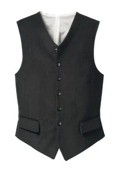 Tailor Hoff Dit eenrijige vest met hoge knoopsluiting is gemaakt van een zware moleskin van Kindermann, een weverij die gespecialiseerd is in dergelijke stoffen. Het heeft niet de gebruikelijke gevoerde rug, maar is geheel van moleskin; de rugband kan worden versteld met een giletgesp.