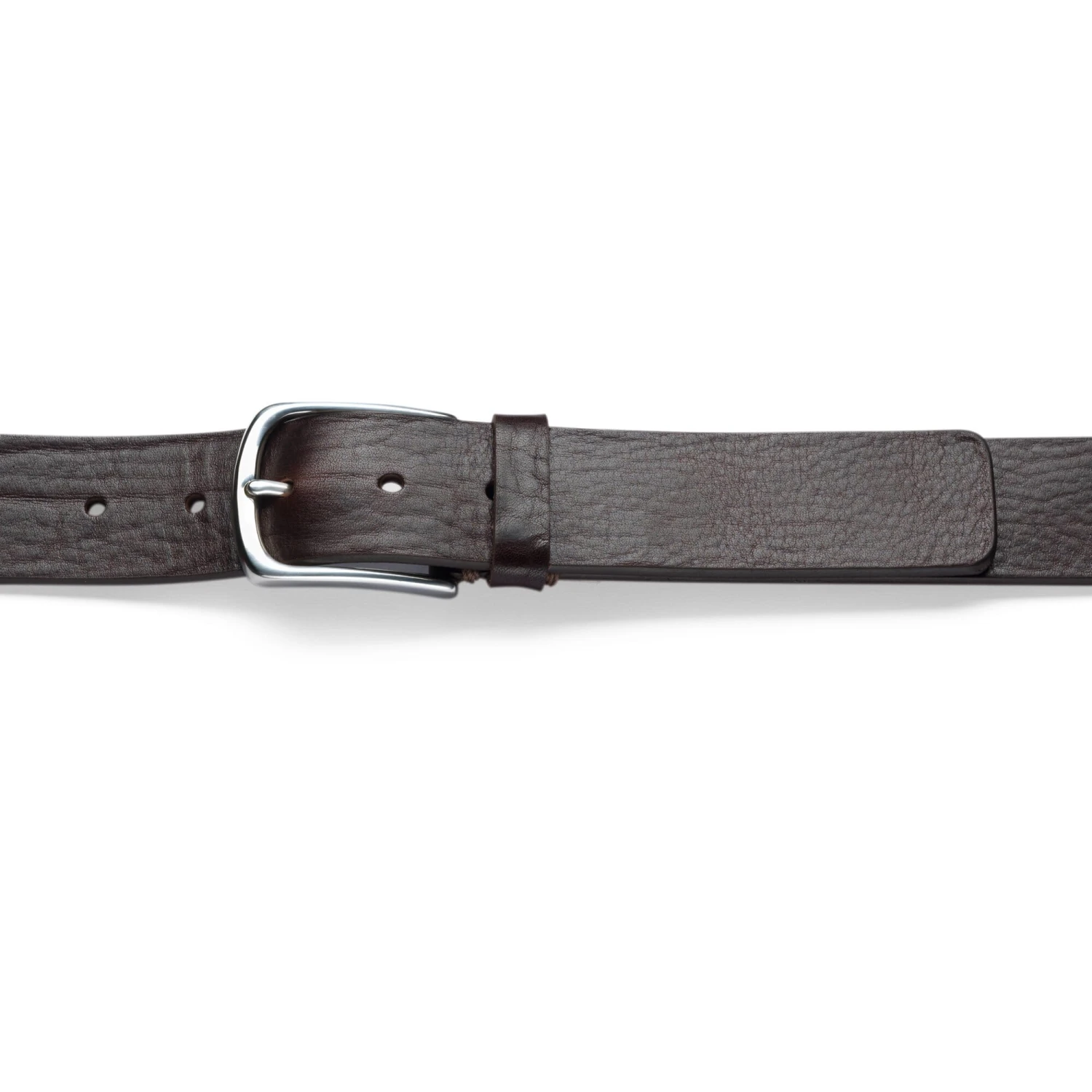Enkelvoudige riem. Runderhuid, plantaardig gelooid. Messing gesp. Gemaakt in Duitsland. Breedte 3,9 cm.