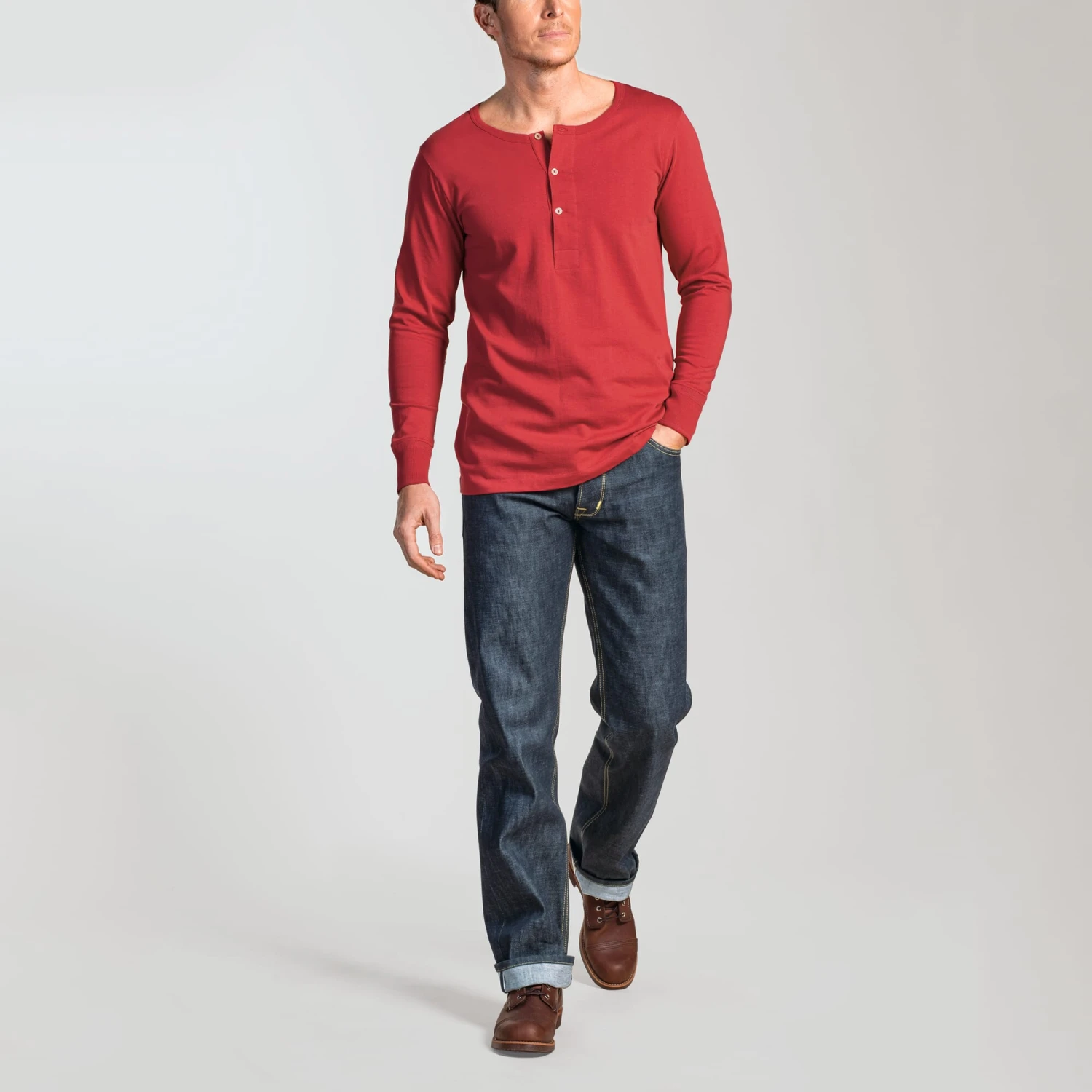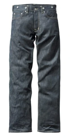 Authentiek van materiaal en afwerking is deze recht gesneden jeans met een hoge tailleband. Hun oorsprong ligt in Amerika in het begin van de jaren dertig, een tijd waarin denim broeken uitsluitend arbeidersbroeken waren. Je kunt het zien en voelen: de ruwe denim voelt nog ruw aan, in het begin bijna board-achtig. Het is geweven op oude schietspoelweefgetouwen, de zichtbare zelfkant is een teken van zijn oorsprong. Het spreekt vanzelf dat een dergelijke jeans een inwerkperiode nodig heeft.