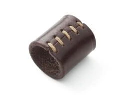 Runderhuid (dikte 2,5 mm), plantaardig gelooid. Gemaakt in Duitsland. Hoogte 3 cm, breedte 2,6 cm. Binnendiameter 2 cm.