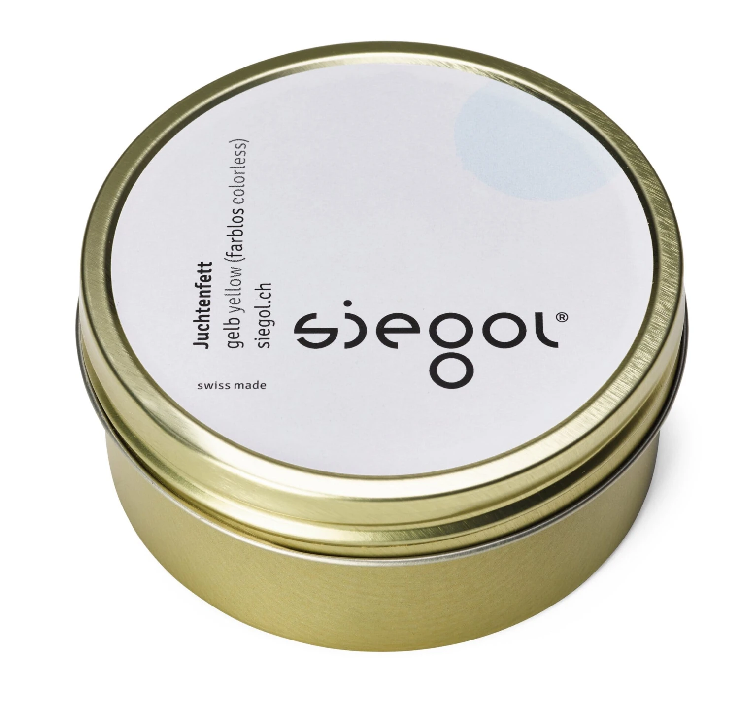 Bijzonder geschikt voor berg- en werkschoenen. Wij bieden twee juchtenvetten aan: in zwart en geel (= kleurloos, zonder kleureigenschappen). Metalen bus van 150 ml