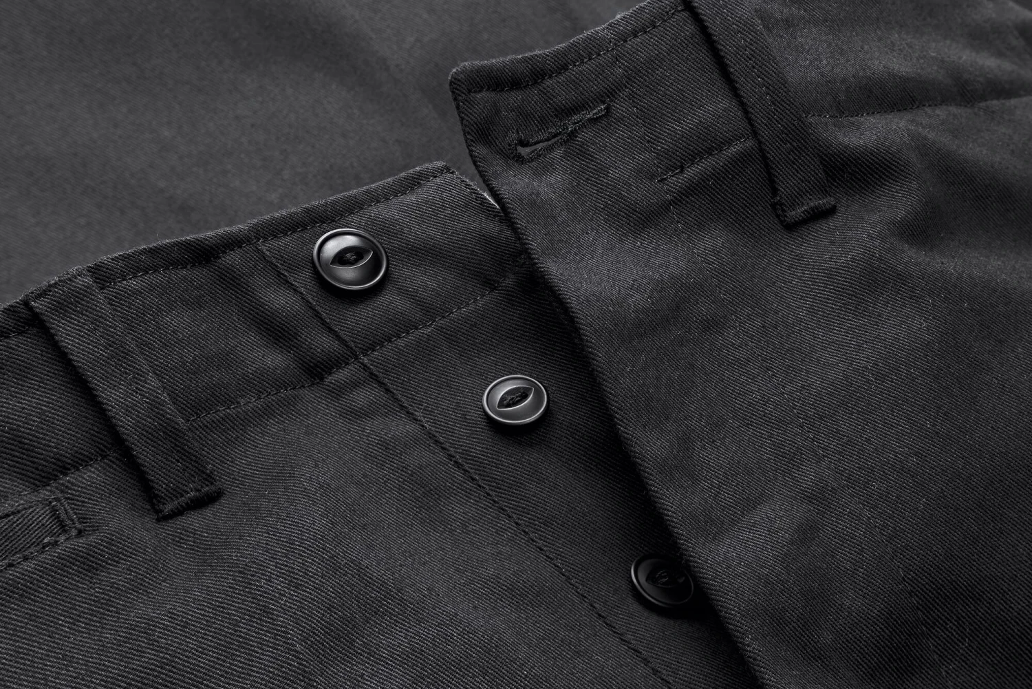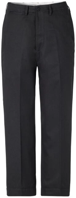 Als unisex model produceert Merz b. Schwanen deze klassieke chino’s met een rechte, vrij wijde pijp, knoopsluiting, twee steekzakken, twee achterzakken met knoopsluiting en een klein muntzakje. De broek is bewerkt met vouwen voor en achter, de broekspijpen kunnen ook omgeslagen worden.