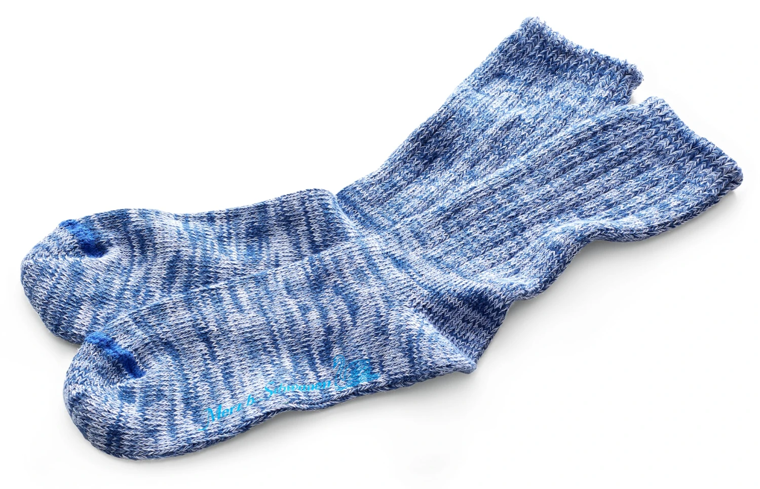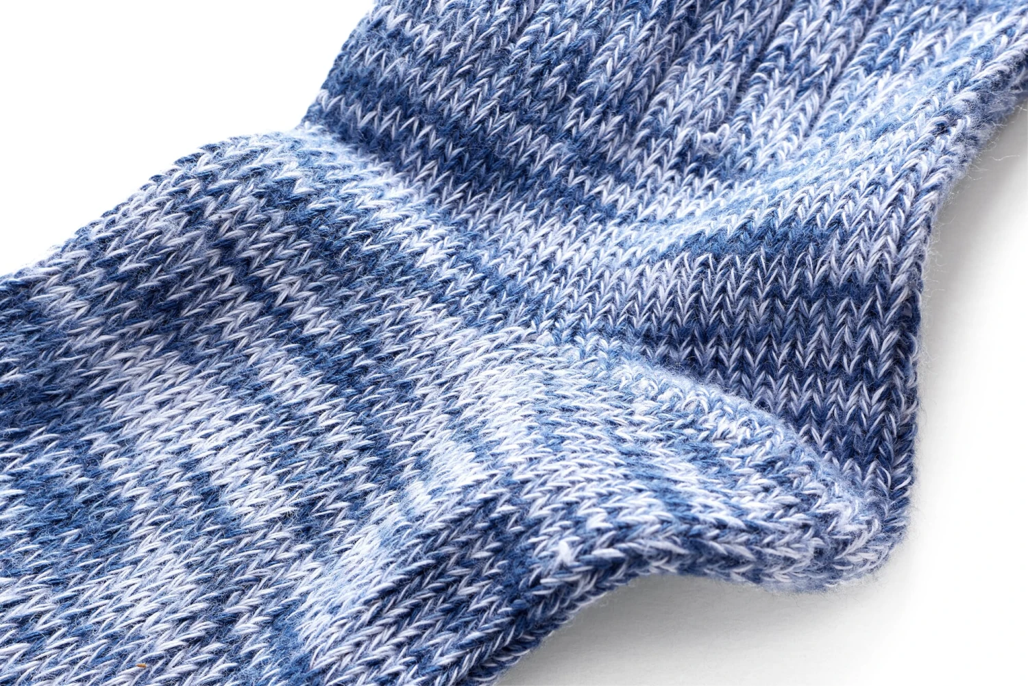 De garens van deze sok zijn gemaakt van huidvriendelijk katoen, wat polyamide en elastaan. De laatste twee verhogen de duurzaamheid, het draagcomfort en de vormvastheid. De gebreide stof heeft een opvallende gemêleerde look. De bovenkant van de sok is gemaakt in ribbreitechniek, het voetgedeelte is glad gebreid.