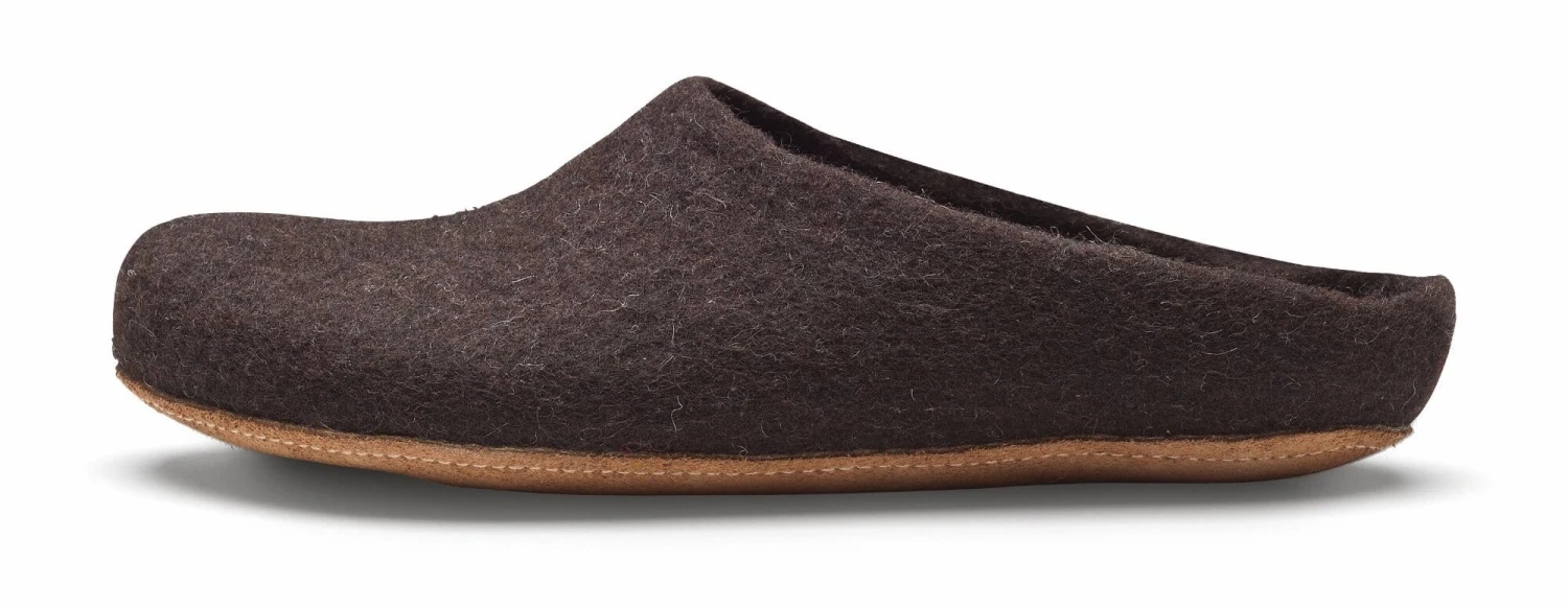 De wol voor deze pantoffels is afkomstig van het Zwitserse Jura schaap, een winterhard, sterk ras dat zeer geschikt is voor het houden op hoge bergweiden. De fijne, braune tot zwarte wol heeft een bijna merinokarakter.