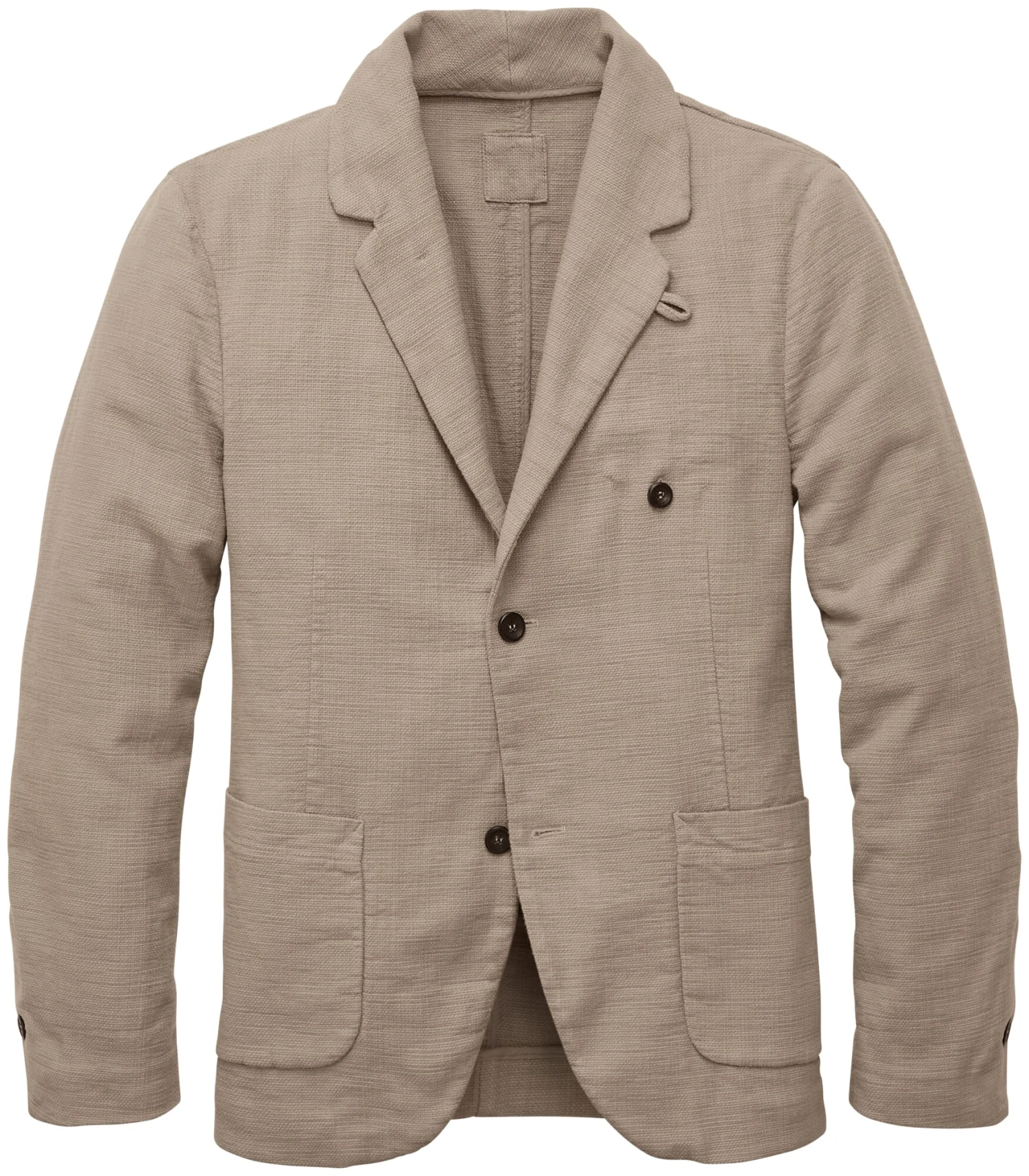 Dit recht gesneden casual jasje heeft afgeronde voorpanden, vormgevende coupenaden voor en scheidingsnaden achter. Het zacht aanvoelende katoen met grove structuur bevat één procent elastaan voor comfort en vormbehoud. Het jasje heeft twee kleine achteropeningen en is gedeeltelijk gevoerd, de naden zijn aan de binnenkant netjes gepaspeld. Twee opgestikte zakken en een binnenzak met knoopsluiting aan de buitenkant houden kleine voorwerpen voor dagelijks gebruik.
