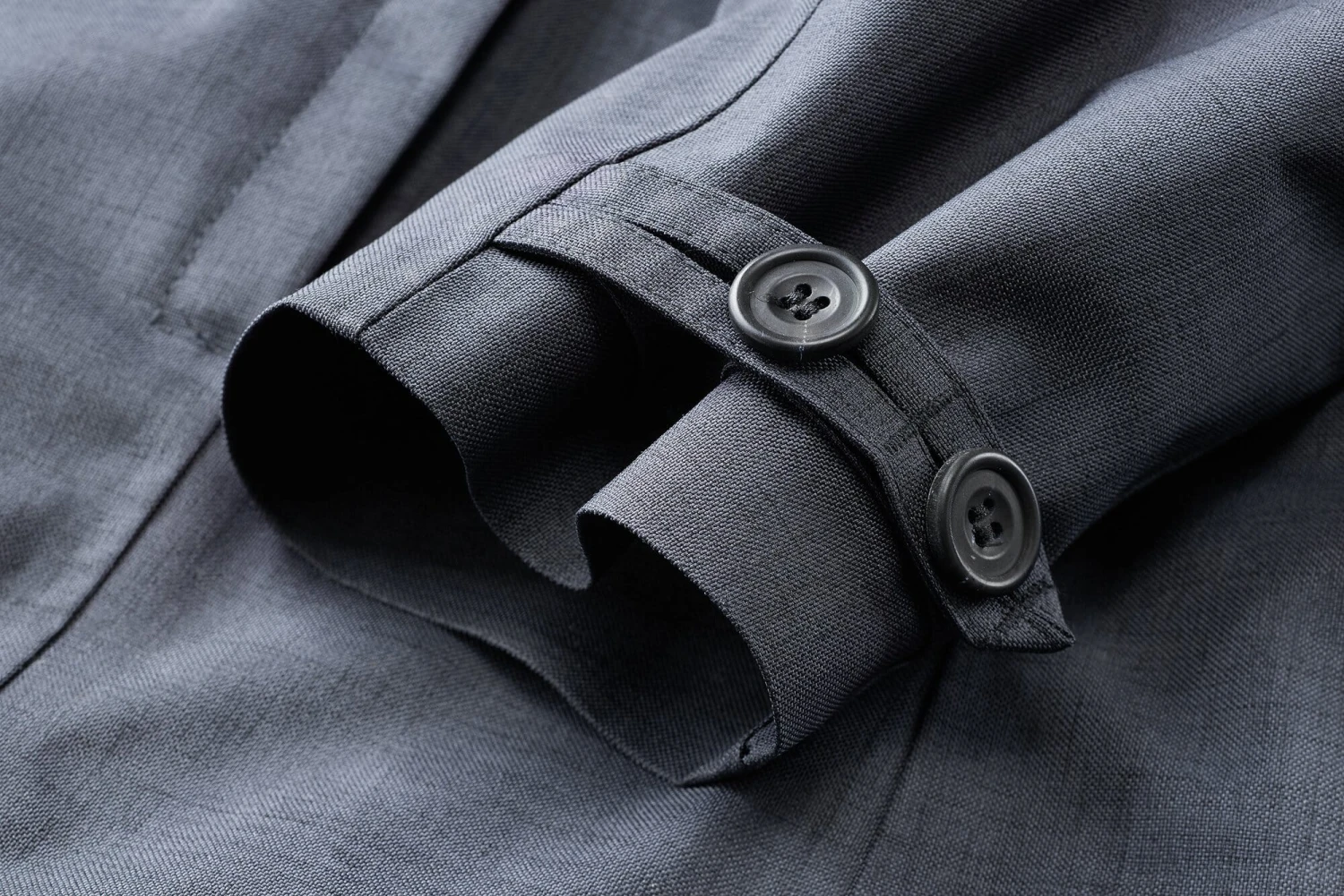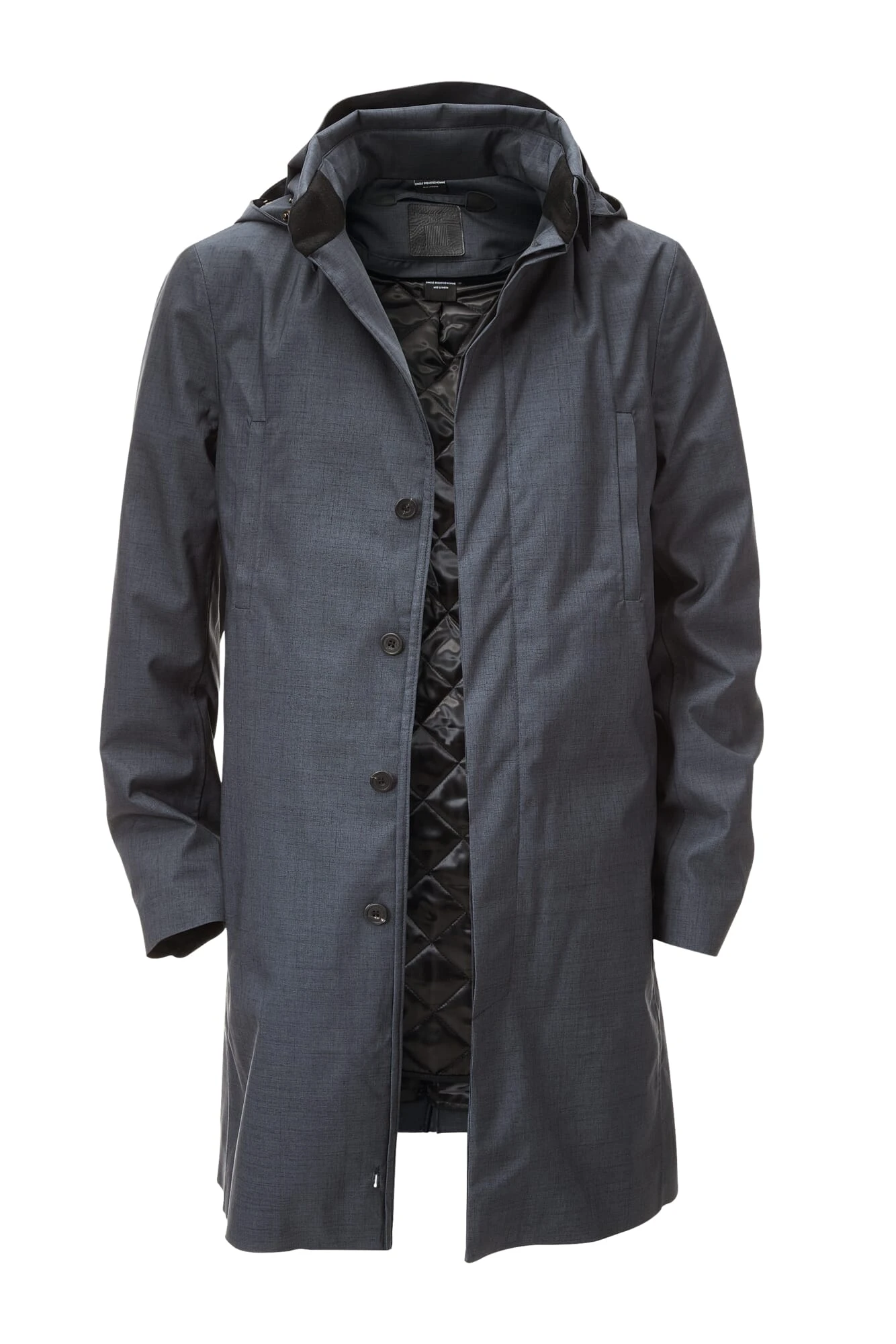 Waterdichte all-weather jas van polyester met een uitneembare gewatteerde voering bestaande uit polyester en een verwarmende vulling van wol en polylactide, alsmede een afneembare capuchon met een doorknoopbare stormkap. De binnenkant van de kraag is eveneens gevoerd met een fleece-inzetstuk. De mouwen van de jas hebben verstelbare manchetten met twee knopen. Twee verstelbare zijbanden in de taille en een trenchbelt met lussen zorgen voor een goede pasvorm. Twee in de lengte afsluitbare borstzakken en vier binnenzakken houden kleine spullen voor dagelijks gebruik. De buitenzakken met rits zitten onopvallend in de zijnaad. Een boxplooi middenachter verhoogt het draagcomfort.